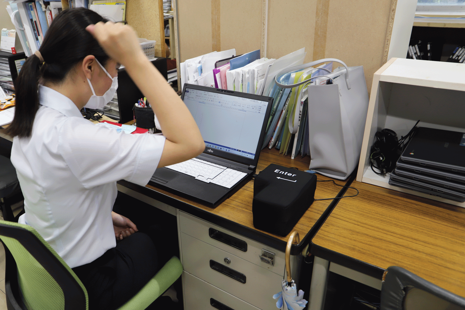 ストレスが溜まったらこのように拳を振り下ろすことも出来ます。本校の先生に試しにストレス発散で「ENTERキー」を叩いてもらいました。