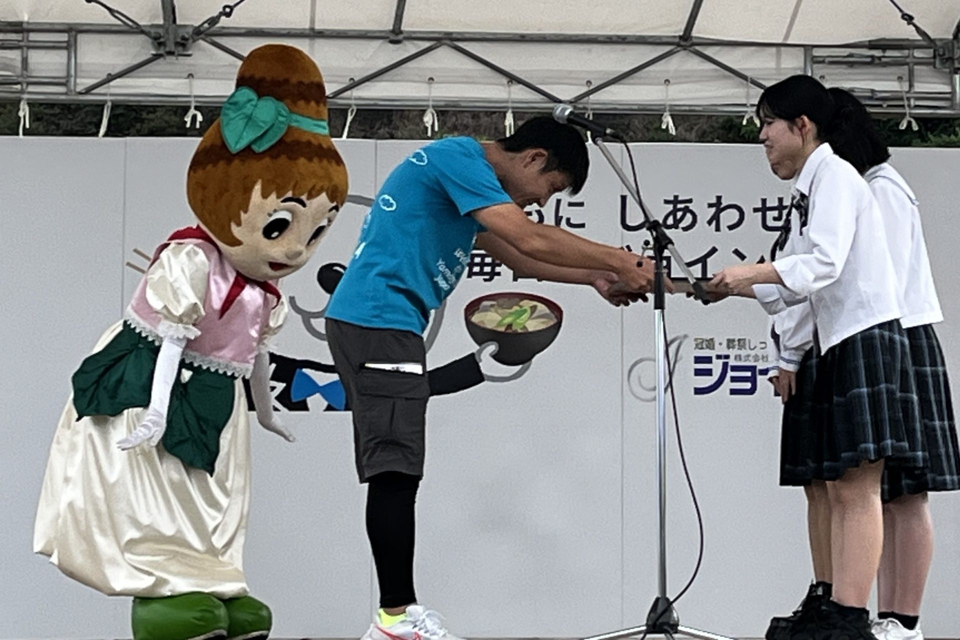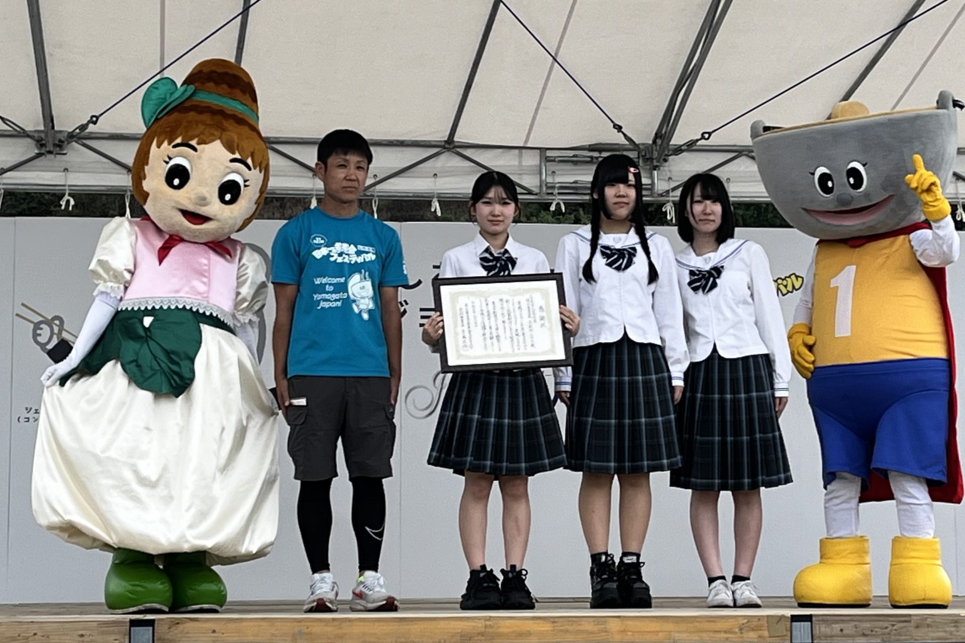 9月14日に開催された「日本一芋煮会フェスティバル」のオープニングセレモニーにて、ゆるキャラ「里味ちゃん」の3代目衣装をお披露目しました。