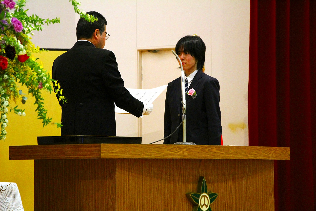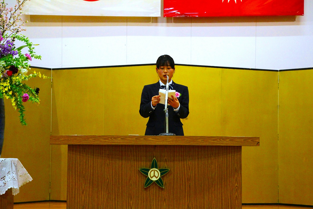 式の中では、前生徒会長より答辞が述べられました。